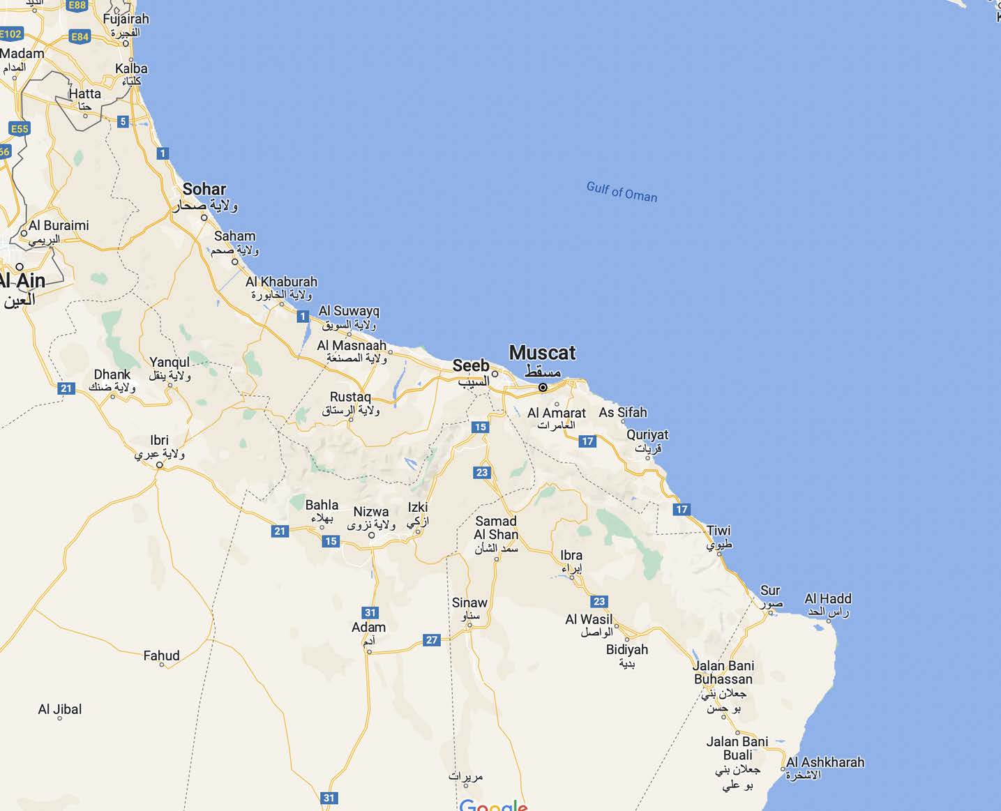 Muscat, the capital of Oman, is located on the Gulf of Oman coast. The country’s interior is a sandy, treeless, waterless desert, while the coast remains the center for culture and trade.